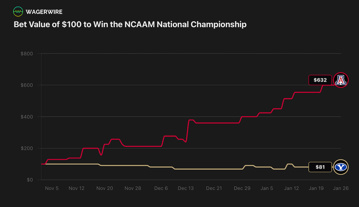 Both of these teams have been good, but Arizona has really exceeded expectations. With a $100 bet before the season started being valued at $632 today, while BYU currently stands at $81.