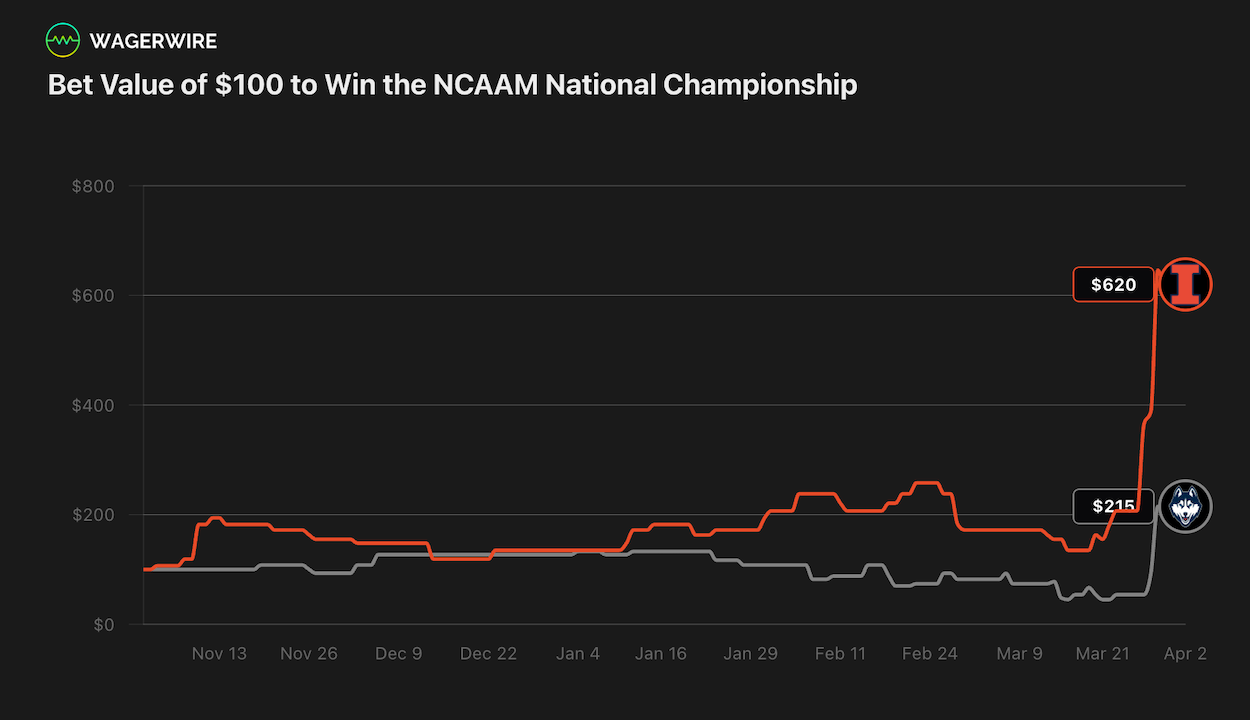 What a comeback from the UConn Huskies last Sunday, putting them in position for their third Final Four appearance in the last four years. This Saturday, they’ll take on the Illinois Fighting Illini at 6:09 EST. The current line on FanDuel has Illinois at -130 with a total of 139.5. According to KenPom, this matchup features the #9-ranked team in UConn against #4 in Illinois.