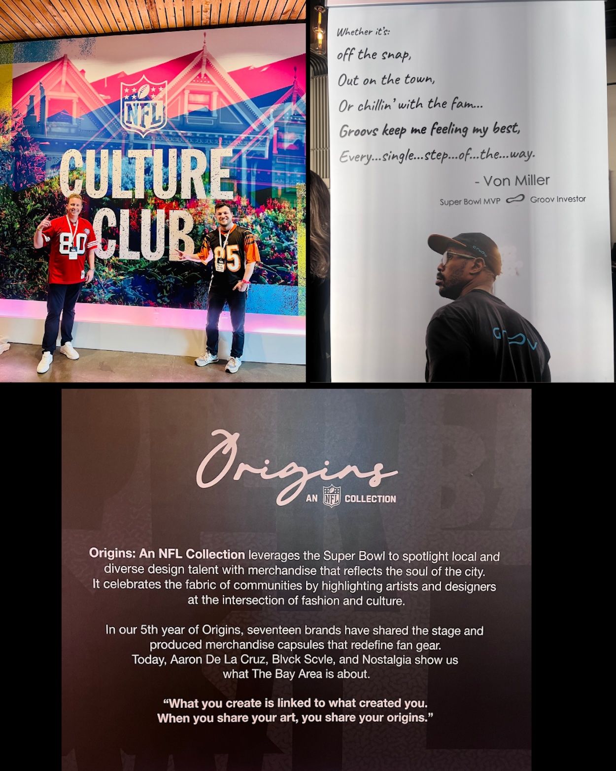 Von Miller was showing off his chicken company Greener Pastures Chicken and the passion is real. We checked out NFL Culture Club LX and Origins, a collection spotlighting local and diverse design talent. One quote that summed it up perfectly: