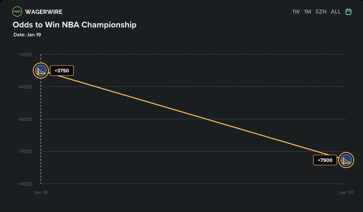 Last night, in the 3rd quarter of the Golden State Warriors vs the Miami Heat, things took a drastic turn, affecting the outlook of the Warriors' season. While many were asleep, Vegas wasn’t. The Warriors’ title odds instantly plummeted from +3750 to +7900 after news broke that 36-year-old Jimmy Butler, acquired at last year’s trade deadline, suffered a torn ACL against his former team.